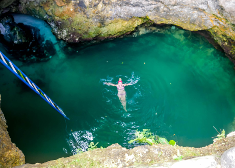 The Blue Hole is about a half hour away from Negril, Jamaica. It’s a 22 ft jump into the mineral